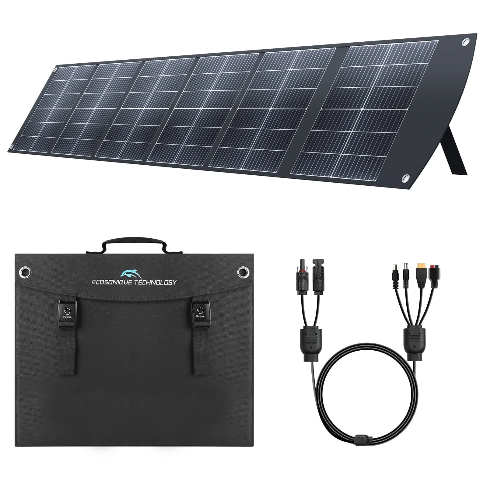 Ecosonique 200W Portable Solar Panel delivers versatile power for outdoor adventures, RVs, and solar generators. Lightweight and foldable with a built‑in kickstand, it includes USB‑C PD3.0, USB‑A QC3.0, MC4, and multiple outputs for efficient charging wherever you go