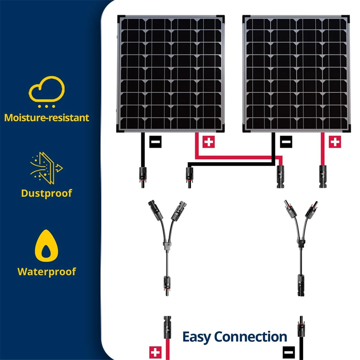 2 Pairs of Y‑Style Solar DC 1000V FMM + MFF connectors for parallel linking between solar panels. Durable and weather‑resistant design ensures secure power connections. Ideal for expanding and optimizing your solar array setup.